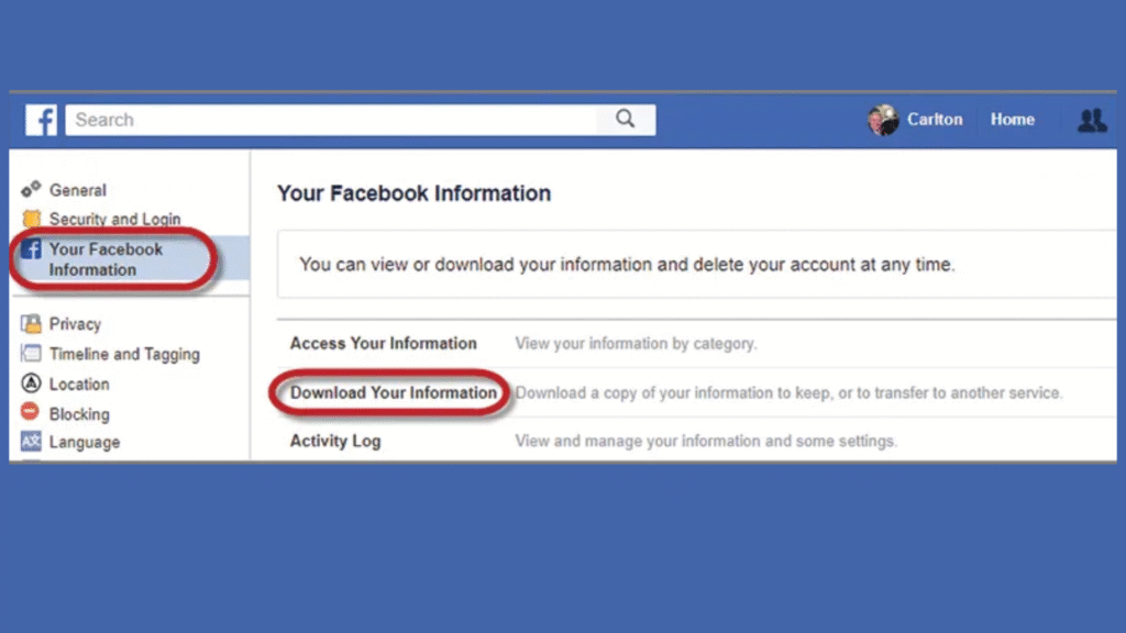 - Select Download Your Information.